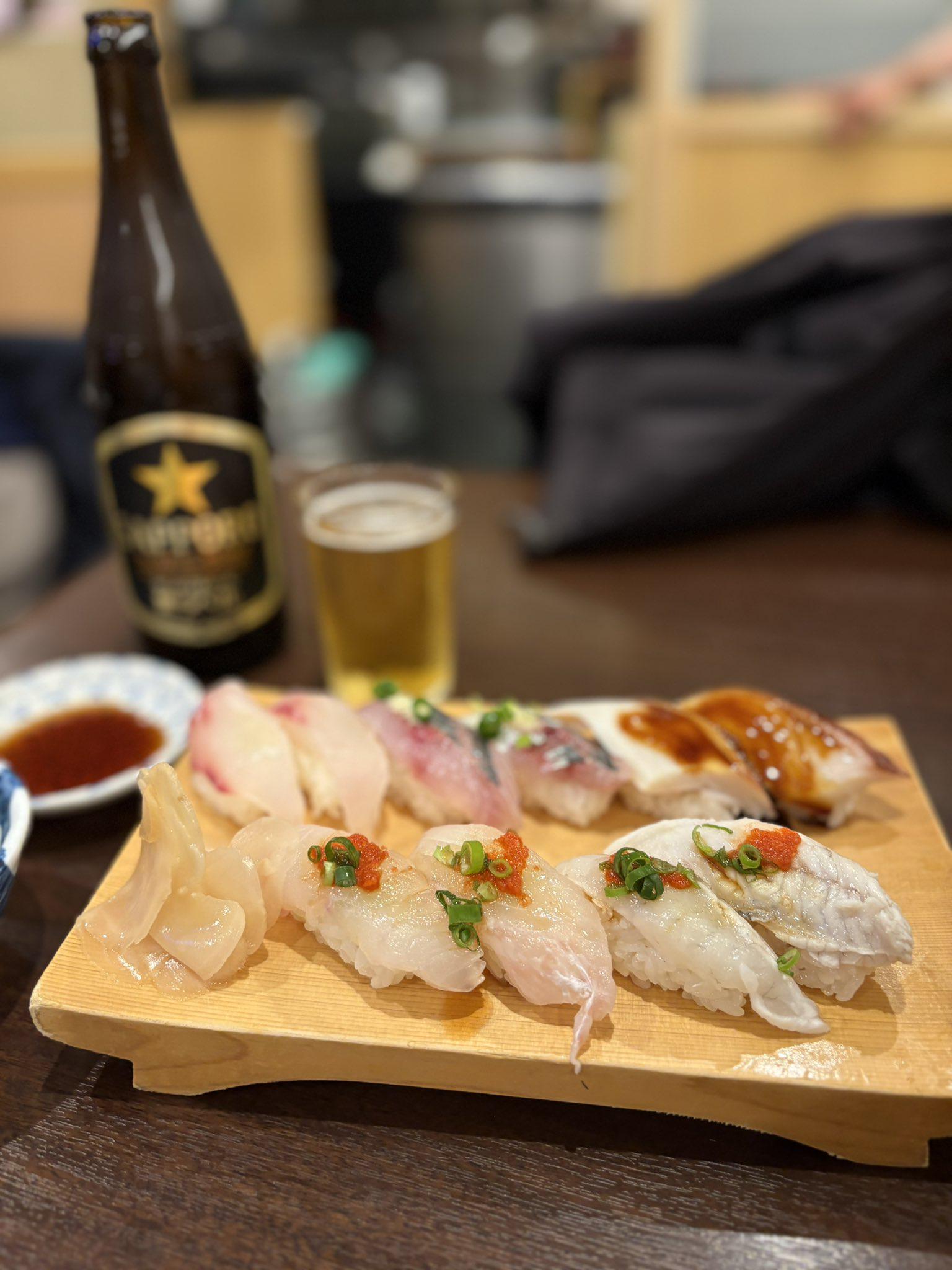 今夜は寿司とビール
