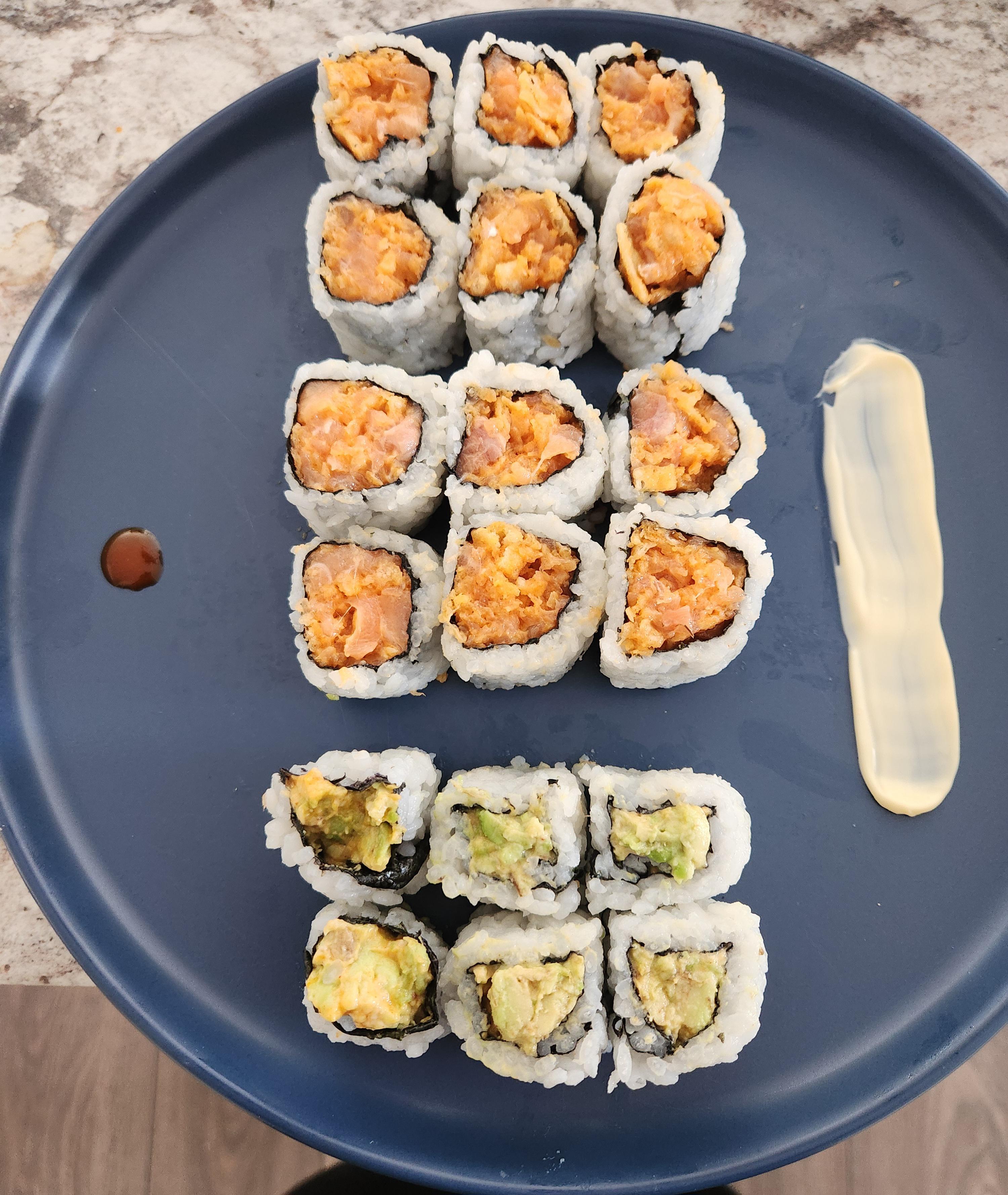 SSushi Home made spicy salmon and spicy avocado rolls😁 April 10, 2026 Home made spicy salmon and spicy avocado rolls😁 by Human-Departure-9717 Tags:Sushi