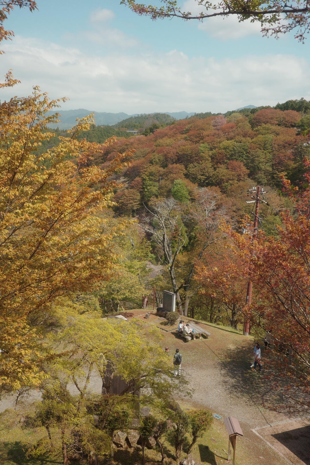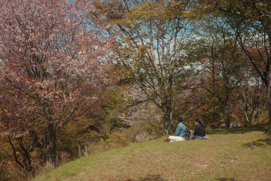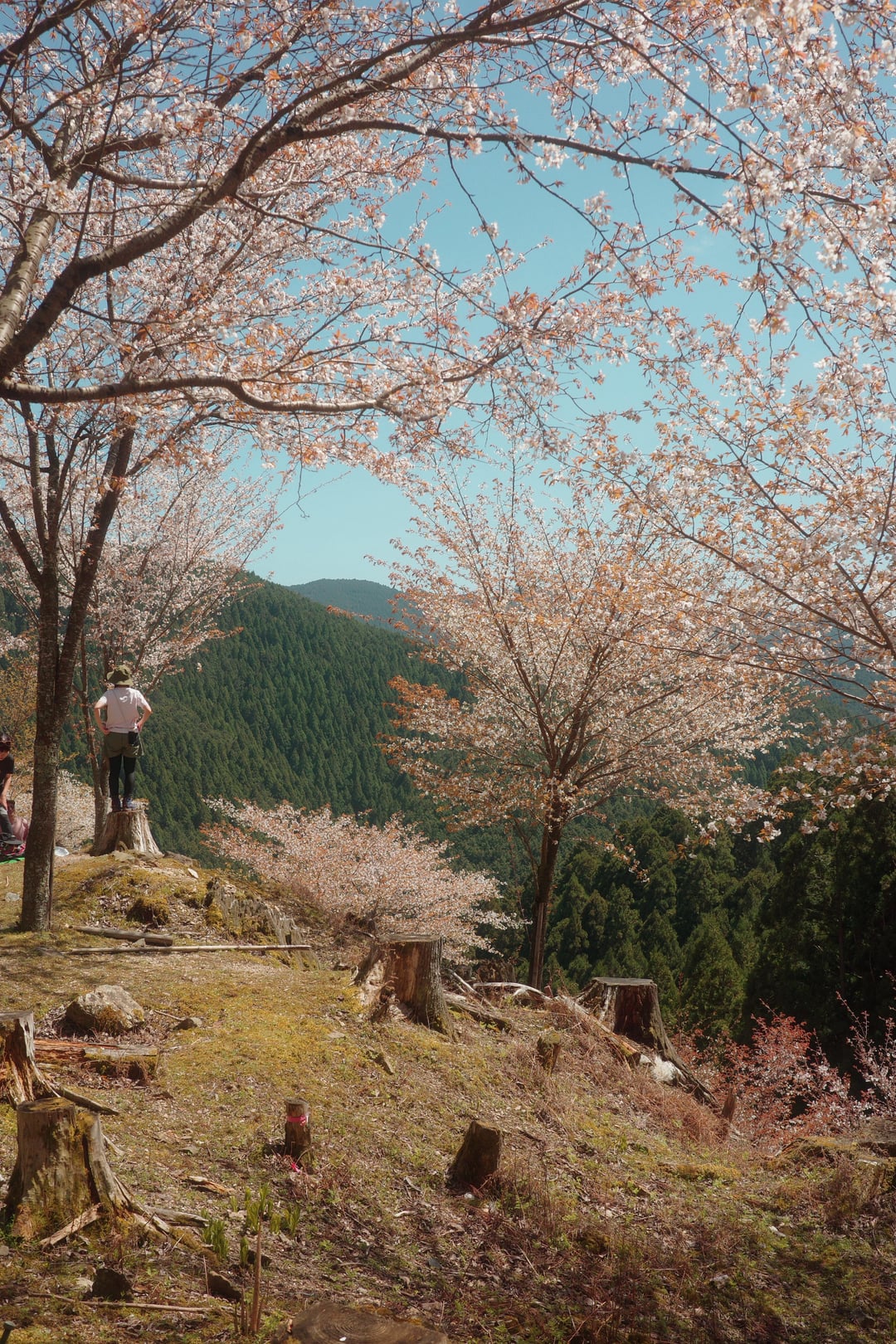 This year, the weather has been very unpredictable, with warm weather and rain alternating over the past two weeks, so most of the cherry blossoms in the Kansai region of Japan have already fallen and turned to leaves. Today, I visited Mount Yoshino, the famous cherry blossom mountain, just to hold on to a little bit of spring.