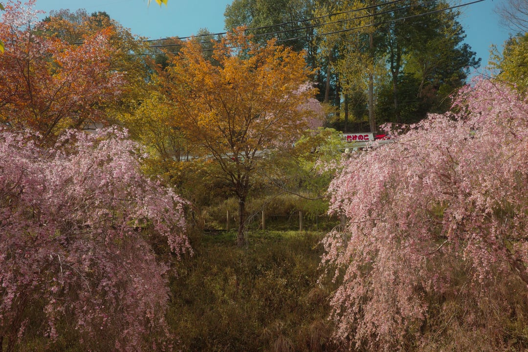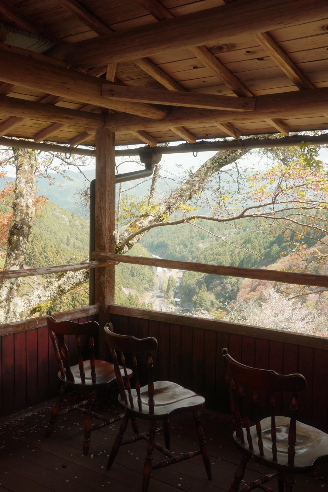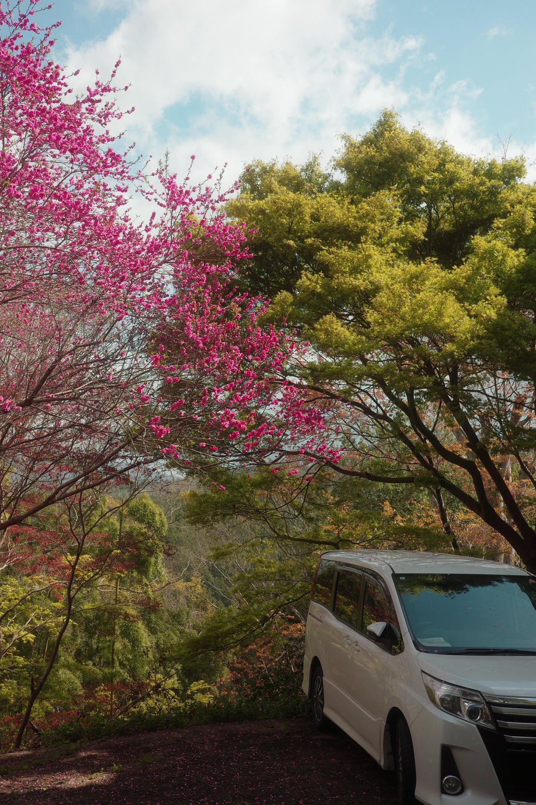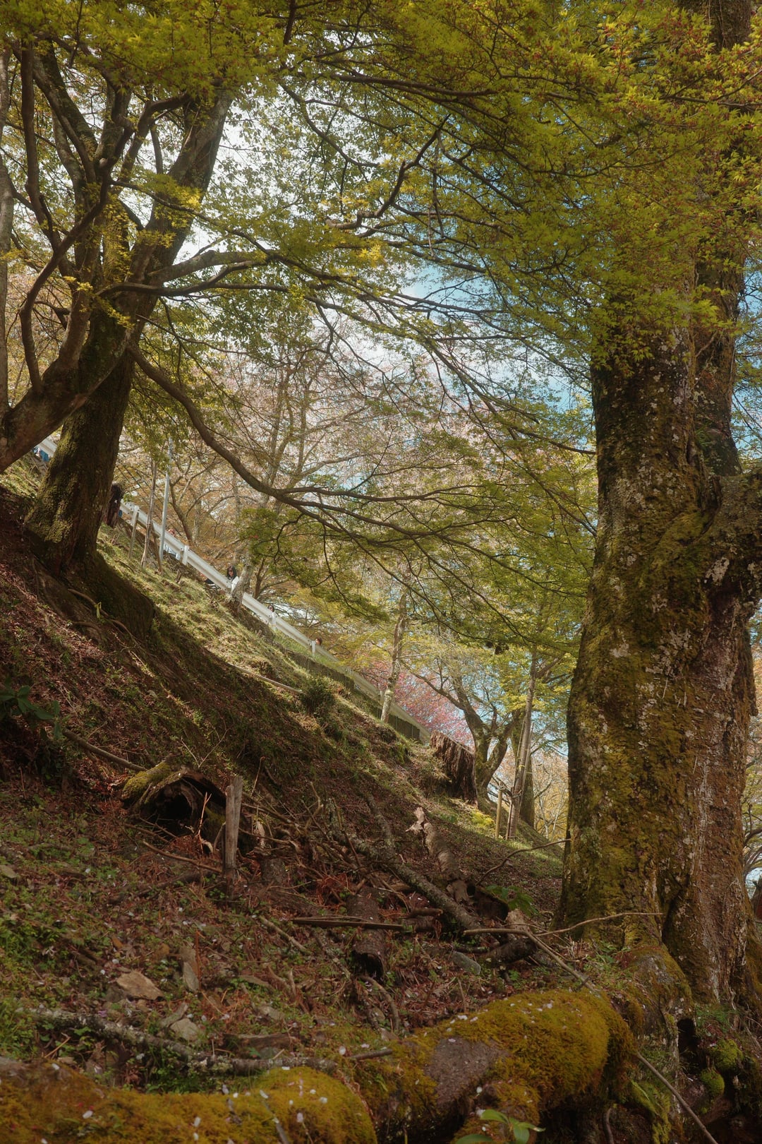 This year, the weather has been very unpredictable, with warm weather and rain alternating over the past two weeks, so most of the cherry blossoms in the Kansai region of Japan have already fallen and turned to leaves. Today, I visited Mount Yoshino, the famous cherry blossom mountain, just to hold on to a little bit of spring.